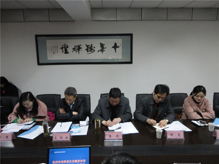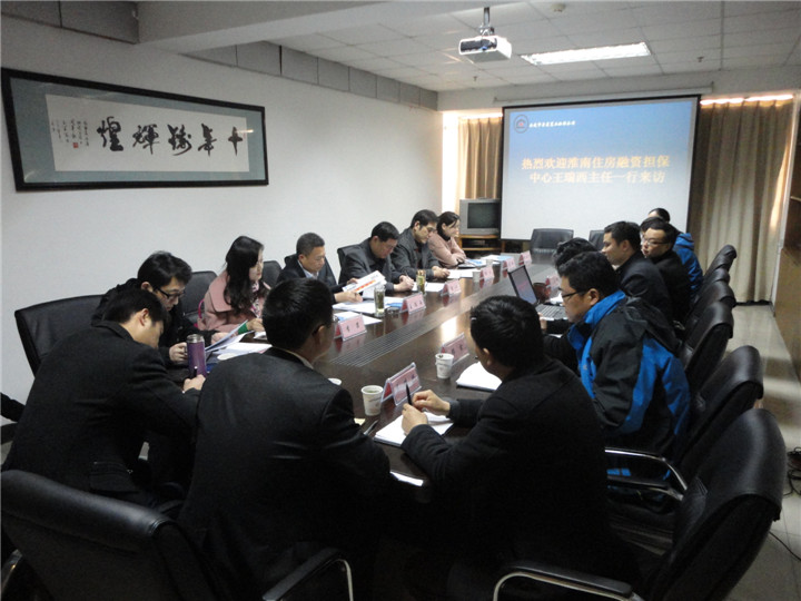 2015年3月19日,淮南市住房融資擔(dān)保中心主任王瑞西一行來到安慶市房屋置業(yè)擔(dān)保公司調(diào)研,雙方就縣域擔(dān)保分公司管理、市場性新業(yè)務(wù)拓展以及住房公積金貸款擔(dān)保行收費(fèi)新模式進(jìn)行了交流溝通。