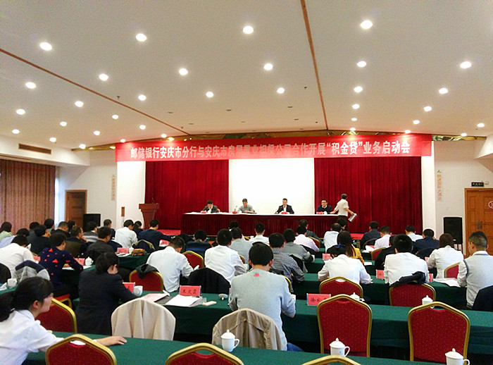 11月6日下午,安慶市房屋置業(yè)擔(dān)保公司與郵政儲(chǔ)蓄銀行安慶市分行聯(lián)合召開(kāi)“置業(yè)消費(fèi)貸”業(yè)務(wù)啟動(dòng)會(huì)。安慶市房屋置業(yè)擔(dān)保公司董事長(zhǎng)、總經(jīng)理沈軍、副總經(jīng)理鄧寅和郵政儲(chǔ)蓄銀行安慶市分行黨委書(shū)記、行長(zhǎng)戴四清、副行長(zhǎng)李金發(fā)等出席啟動(dòng)會(huì),擔(dān)保公司七縣一市分公司經(jīng)理及郵儲(chǔ)銀行各縣支行行長(zhǎng)等60余人參加了會(huì)議。