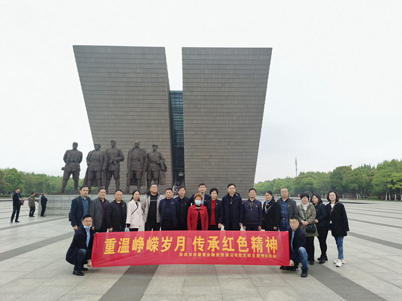 4月25日,安慶市房屋置業(yè)融資擔(dān)保公司黨支部組織全體黨員到渡江戰(zhàn)役紀(jì)念館,把黨史學(xué)習(xí)教育的課堂搬到這里,開展“重溫崢嶸歲月、傳承紅色精神”主題黨日活動。渡江戰(zhàn)役紀(jì)念館坐落在巢湖之濱,以基本展陳《百萬雄師過大江》為主線,共展出珍貴歷史照片、文物、油畫、雕塑2500余件,再現(xiàn)了革命艱難歷程、軍民團(tuán)結(jié)一心的恢宏篇章。通過一件件歷史文物、一幅幅革命影像,為我們再現(xiàn)了軍民奮勇渡江作戰(zhàn)的壯闊畫面。活動期間,再次重溫了入黨誓詞,部分黨員還分別進(jìn)行了戰(zhàn)役介紹、戰(zhàn)役中的小故事、觀后感活動。不忘歷史,開創(chuàng)未來,通過追尋渡江戰(zhàn)役英烈們的足跡,牢記革命先烈浴血奮戰(zhàn)、不怕犧牲的歷史,感悟初心使命,汲取奮斗力量,為推進(jìn)置業(yè)擔(dān)保國有企業(yè)改革發(fā)展開拓新局面。活動還邀請了局紀(jì)檢組、機關(guān)黨委、企指科和股權(quán)單位相關(guān)負(fù)責(zé)人參加。
